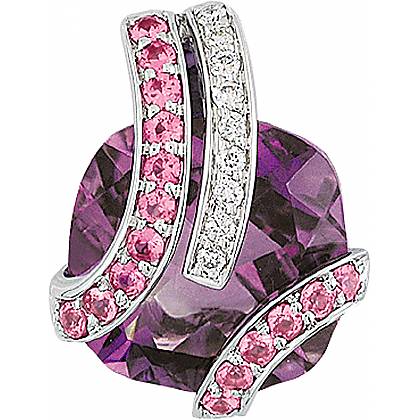 | Вставка | 1 аметист - 6.00кр, 16 сапфиров розовых - 0.38кр, 9 бриллиантов - 0.07кр |
